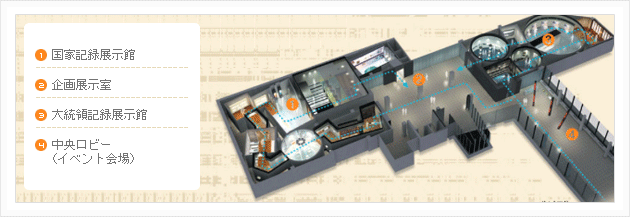 国家記録展示館、大統領記録展示館、閲覧室大講堂、中会議室、資料室、分任討議室等
