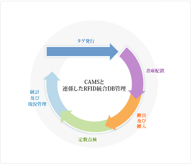 非接触式認識技術のRFID(Radio Frequency Identification)は、遠距離多重認識などの長所を持つユビキタスの革新技術として脚光を浴びている技術です。国家記録院では記録分野において世界で初めてRFIDを導入し、記録物管理業務プロセスの end-to end 統合管理を可能にしました。 国家記録院のU-記録物管理体系は今後、国家標準として他の記録物管理機関における記録物管理体系の参照モデルとなることでしょう。