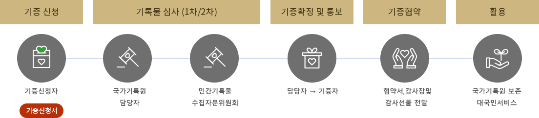근대 이후부터 현재까지 생산된 공공기관의 정책, 사업, 행사 또는 국민적 관심과 역사성이 높은 사건, 사고, 인물 등과 관련하여 개인 또는 단체가 보유한 모든 형태의 기록물