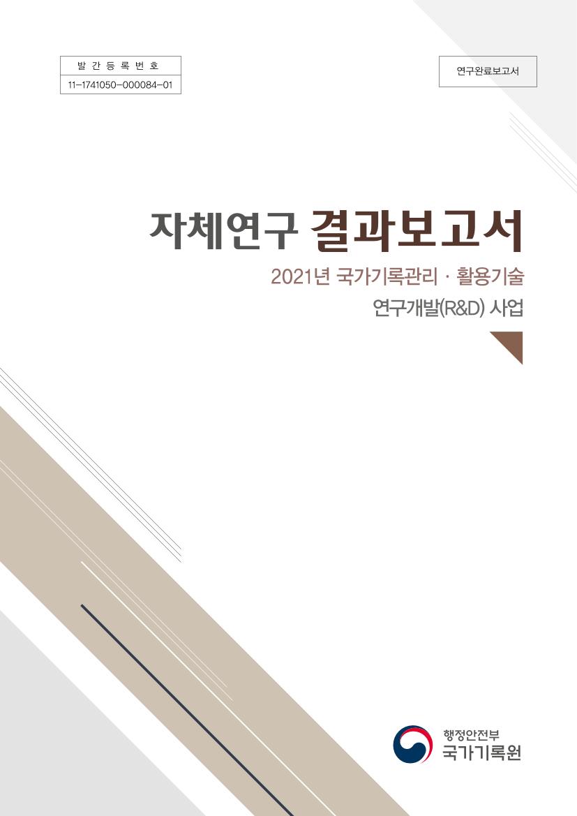 국가 중요기록물의 안전한 후대전승을 위한 과학적 기반의 기록관리기술 연구개발을 목표로, 연구개발사업을 통해 확보된 기술, 노하우 등이 포함된 연구 결과물을 소개 합니다.