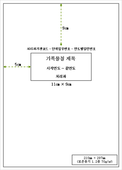 - 분류번호, 보존기간, 생산연도, 제목, 생산부서명 기재