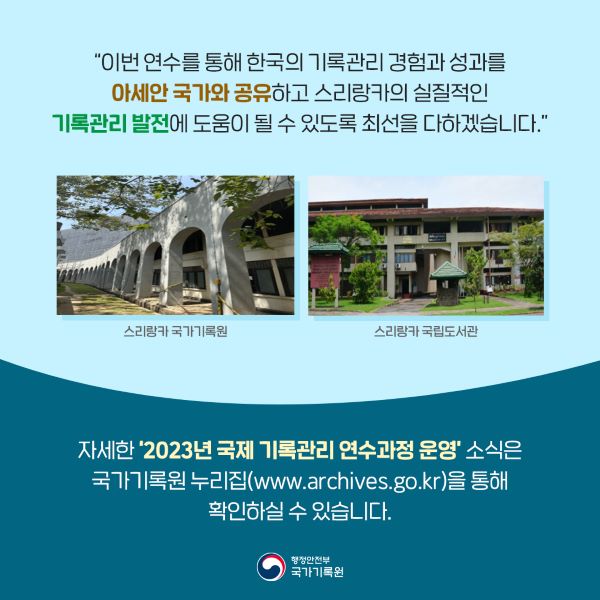 제목 국가기록원, 스리랑카에 선진 기록관리 경험 공유