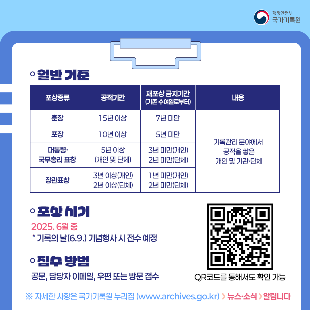 제목 2025년 국가기록관리 유공 포상후보자 공모