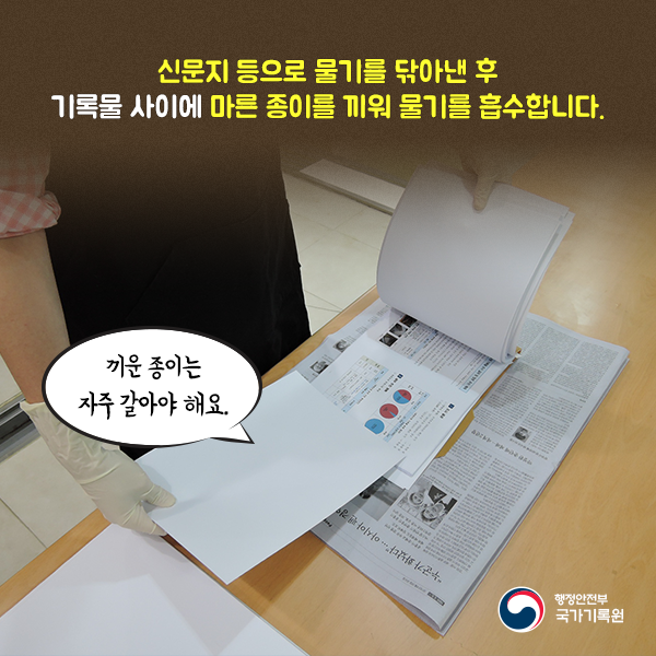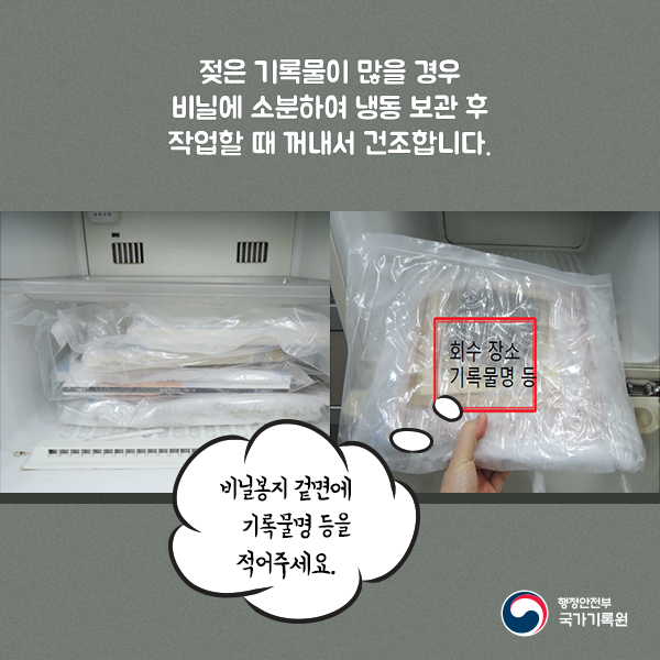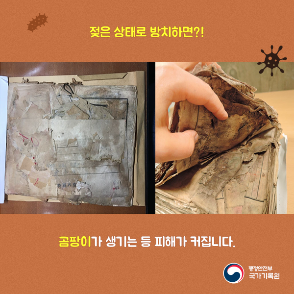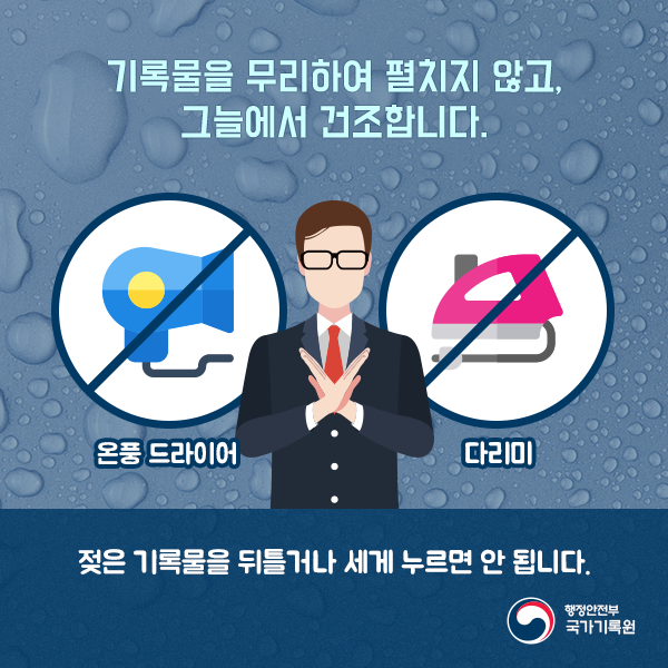 제목 기록물이 젖었을 때 어떻게 해야 할까요?