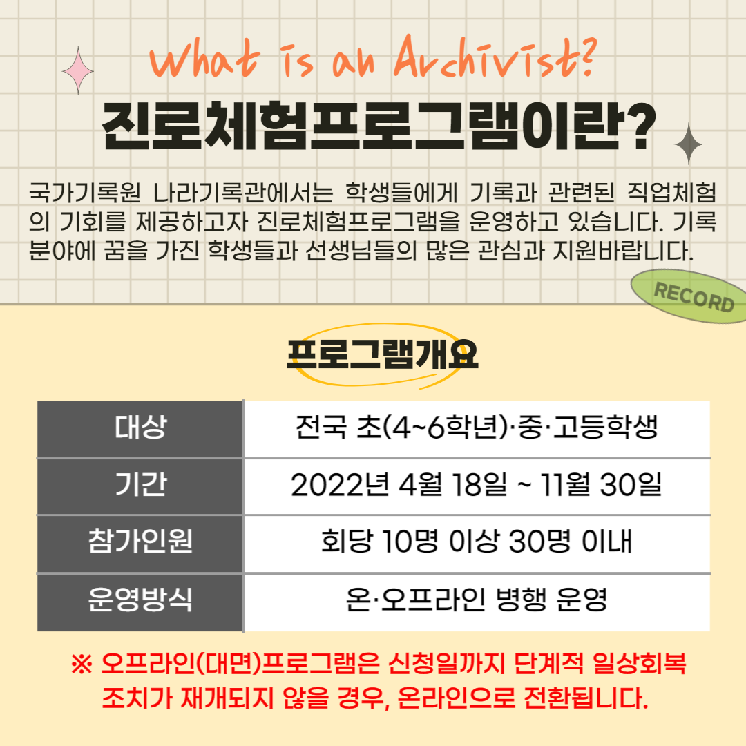 제목 2022년 나라기록관 진로체험프로그램 안내