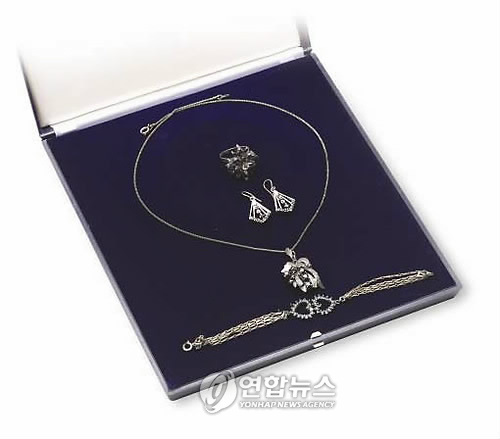 <p class="tit">역대 대통령이 각국 정상에게 받은 선물은? [연합뉴스 2008-12-18 13:49]</p> (서울=연합뉴스) 국가기록원 대통령기록관은 전두환 전 대통령부터 노무현 전 대통령까지 역대 대통령들이 받은 선물 4천700여점 가운데 100점을 선별, 사진과 설명을 곁들인 도록 형태의 '대통령 선물 기술서집'을 18일 발간했다. 전두환 전 대통령이 1982년 케냐 방문때 당시 대니얼 아랍 모이 대통령으로부터 받은 사파이어로 된 반지와 목걸이, 팔찌, 귀걸이 세트.</p> |