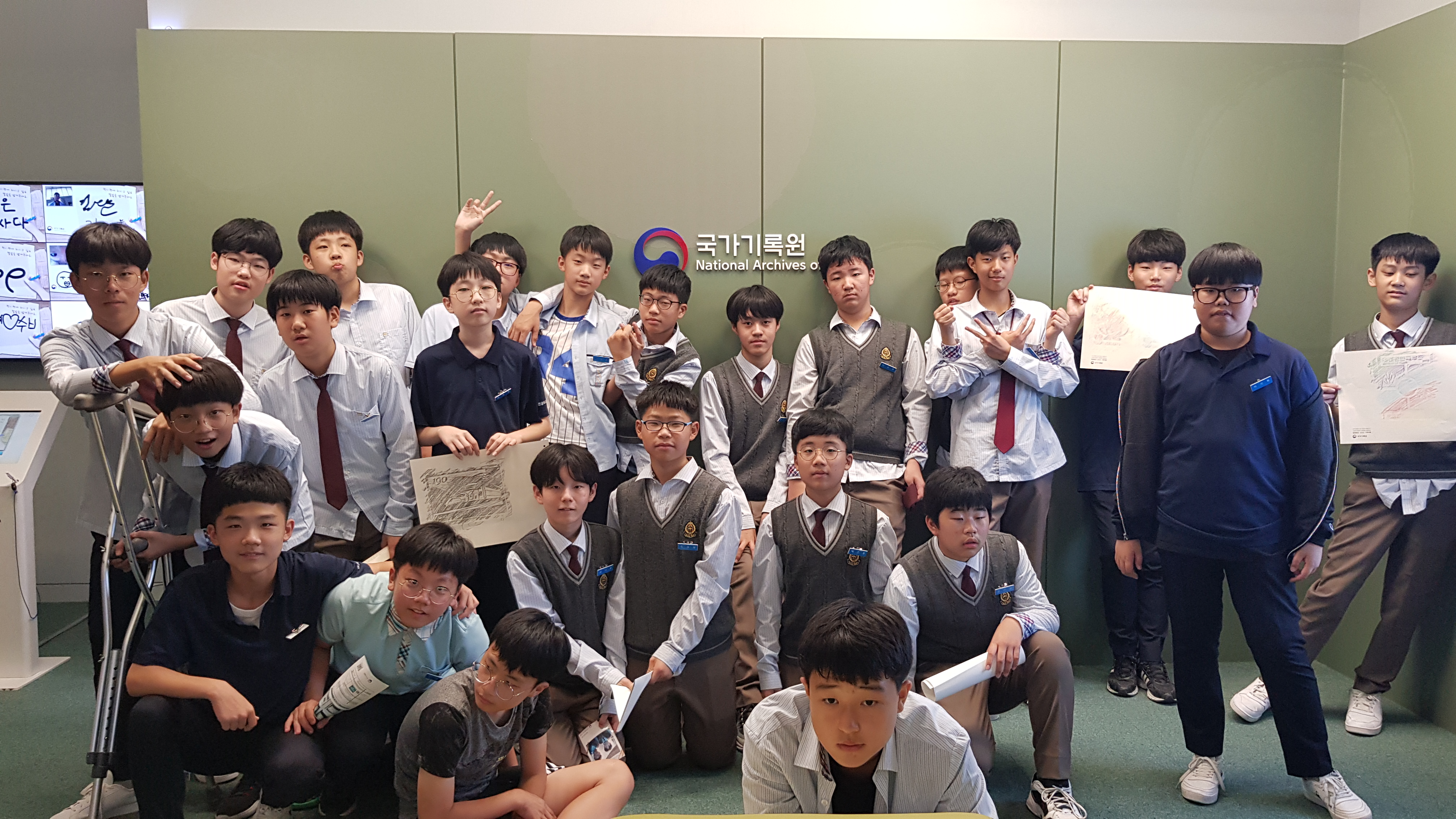 국가기록전시관 체험 및 관람 후 단체사진입니다.