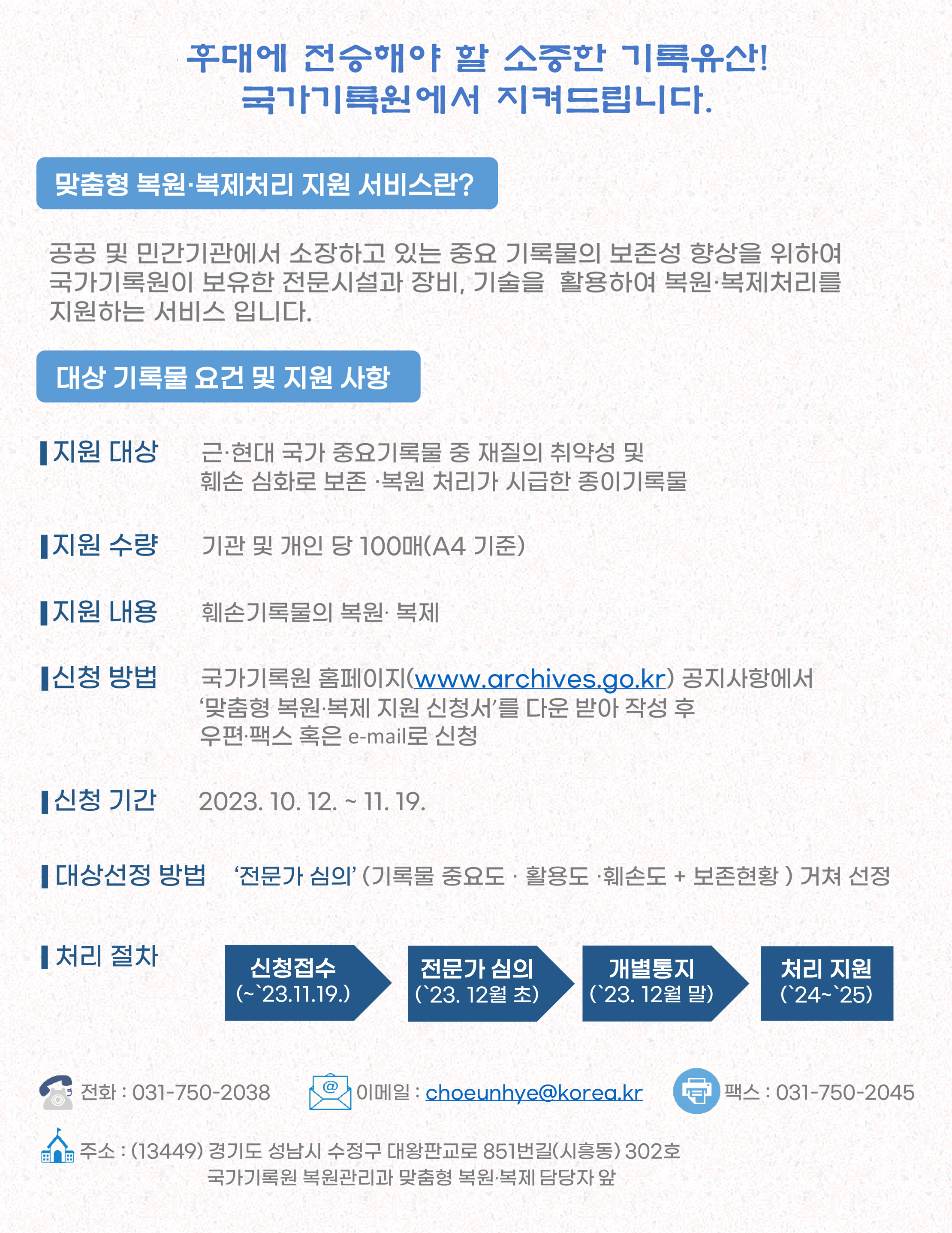 제목 「'24~'25년 맞춤형 복원·복제처리 지원 서비스」신청 안내
