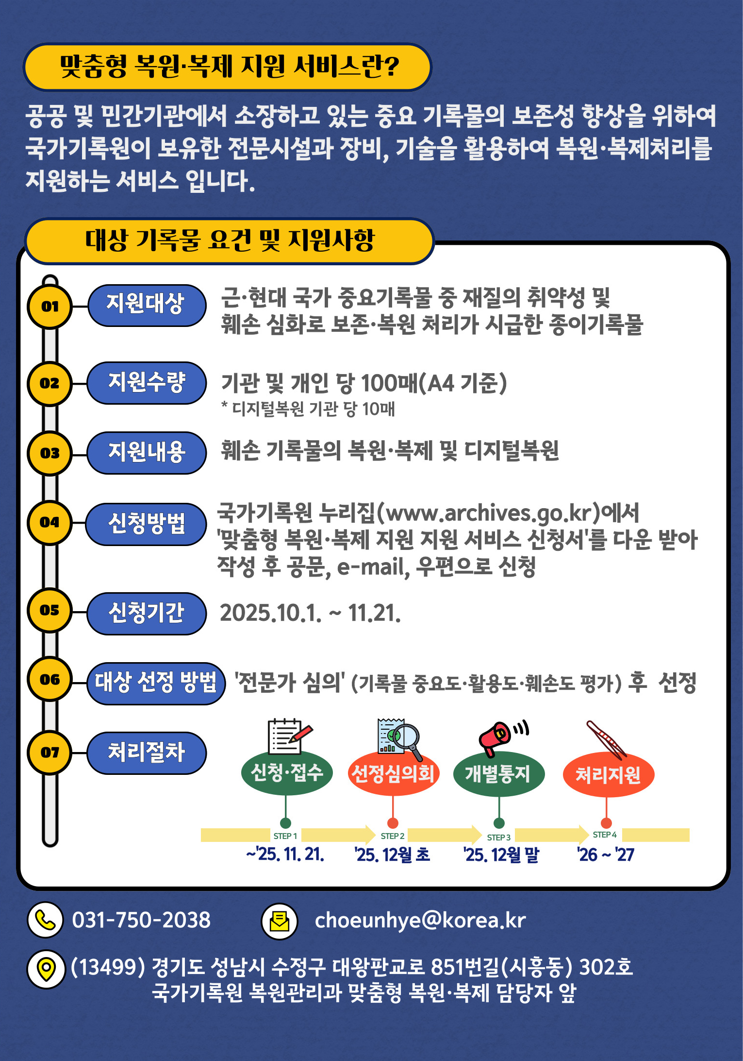제목 「2026~2027년 맞춤형 복원·복제처리 지원 서비스」 안내