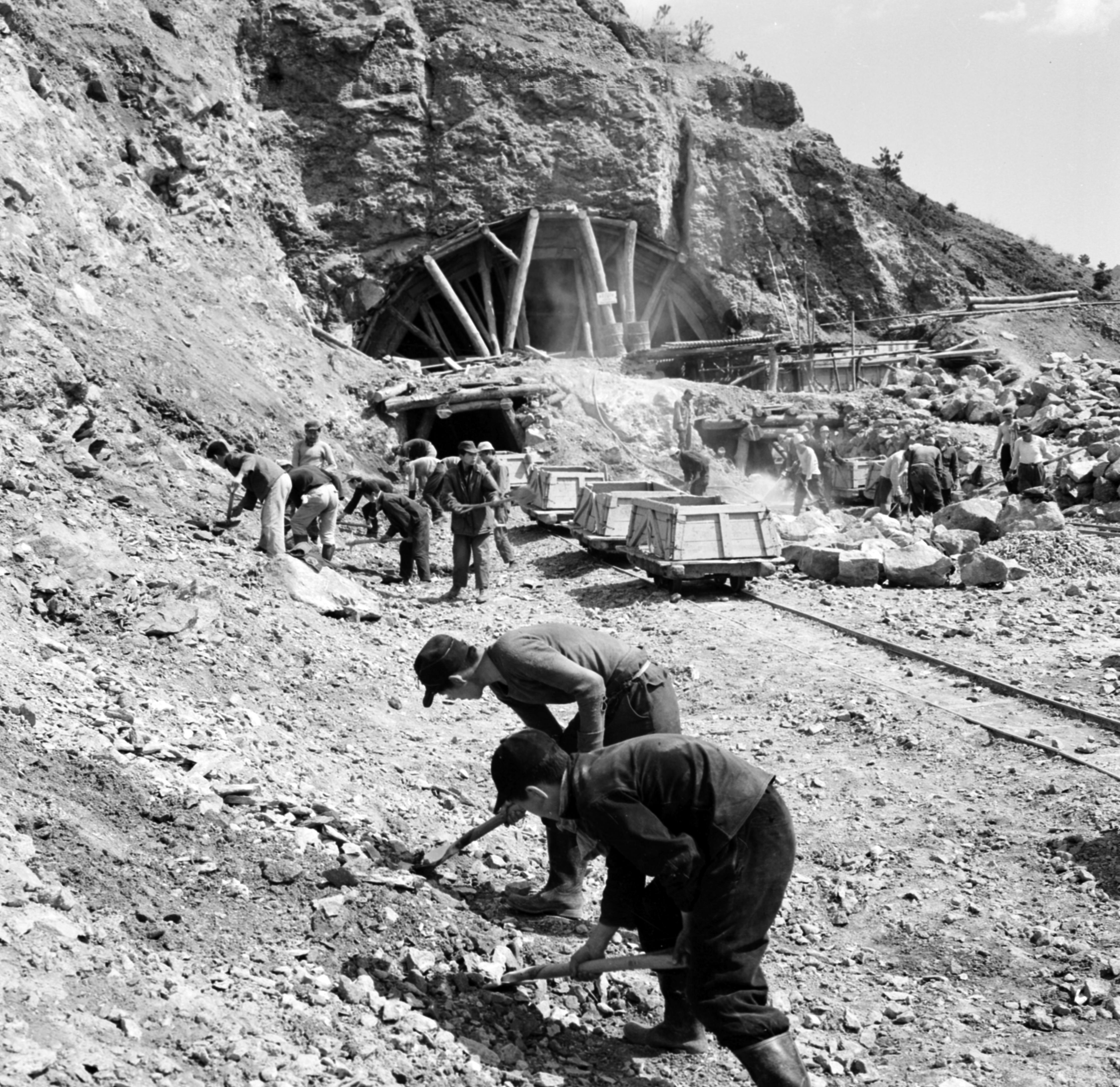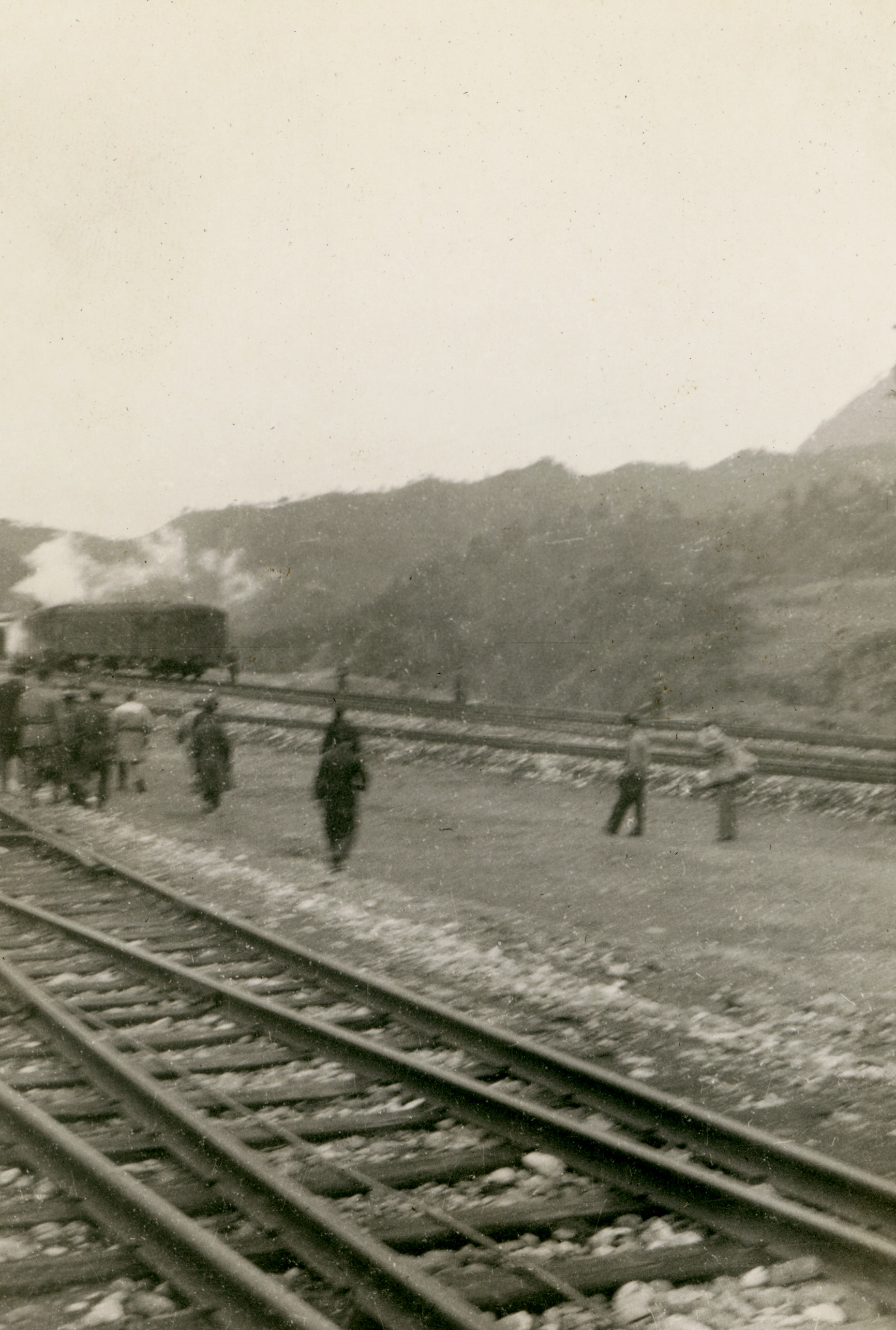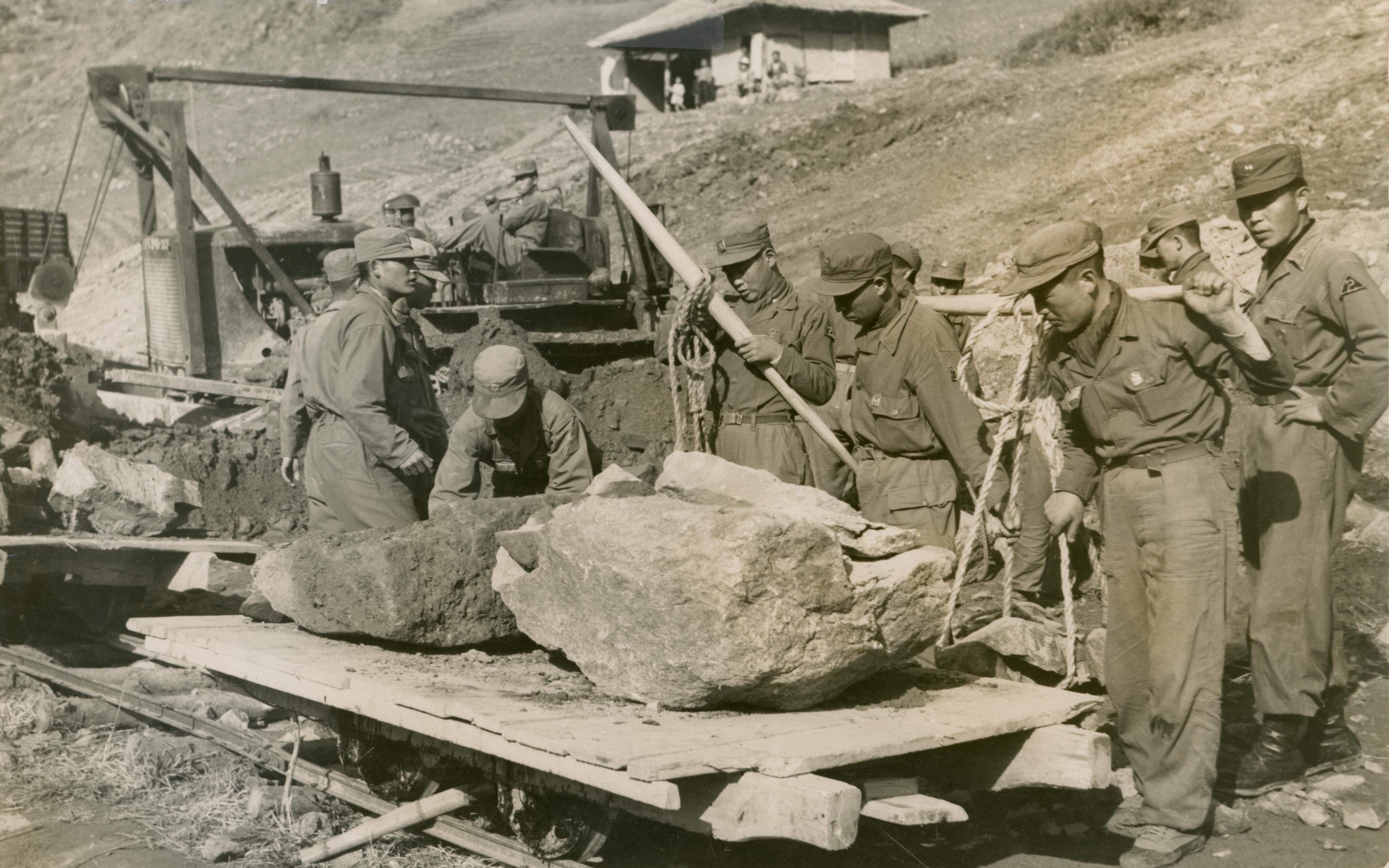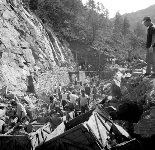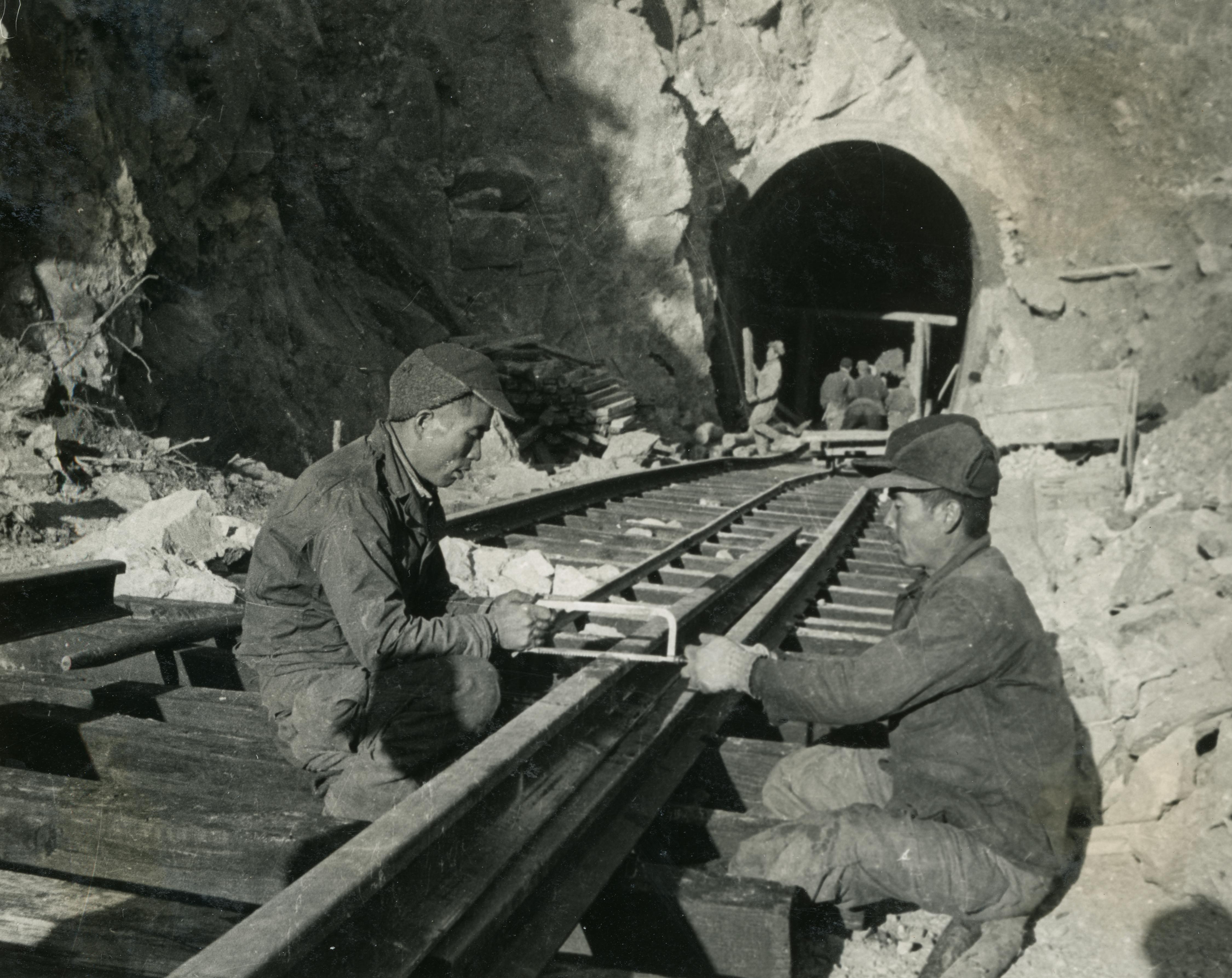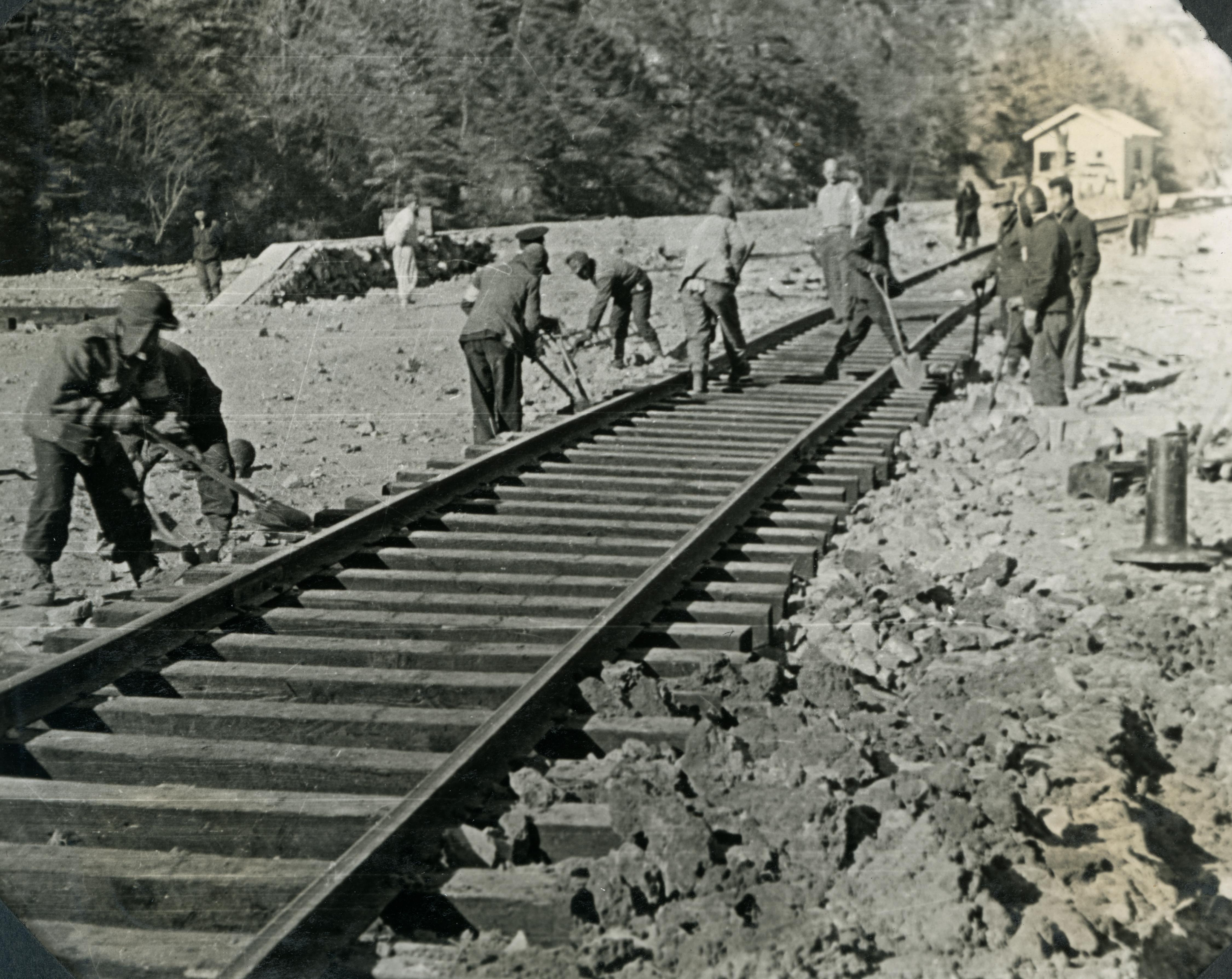 군 파견단에 의한 영암선 건설 (DEU0001430) | 도계 터널 앞 레일 컷팅 작업 (DEU0052623) |