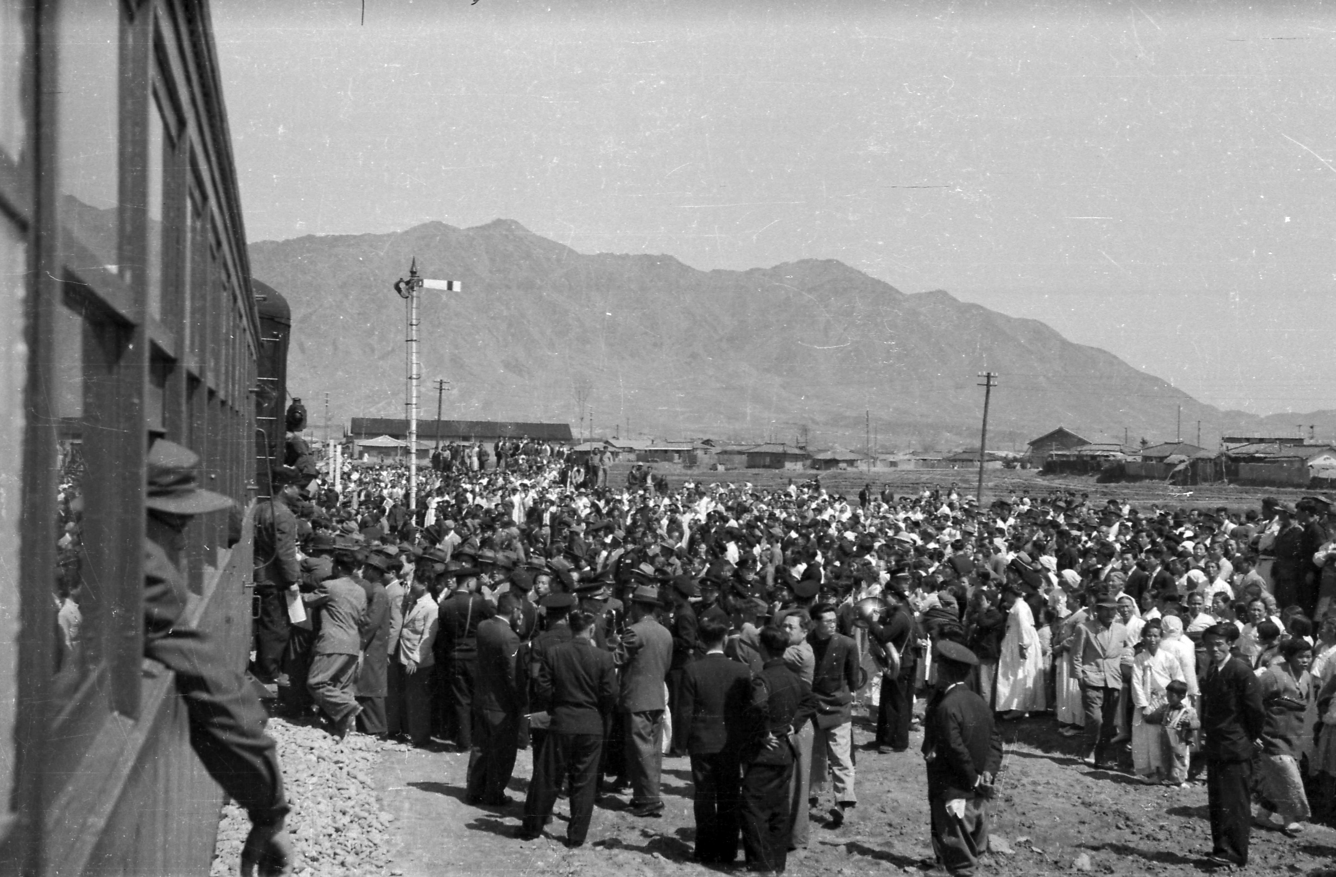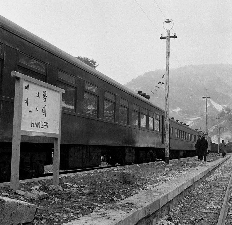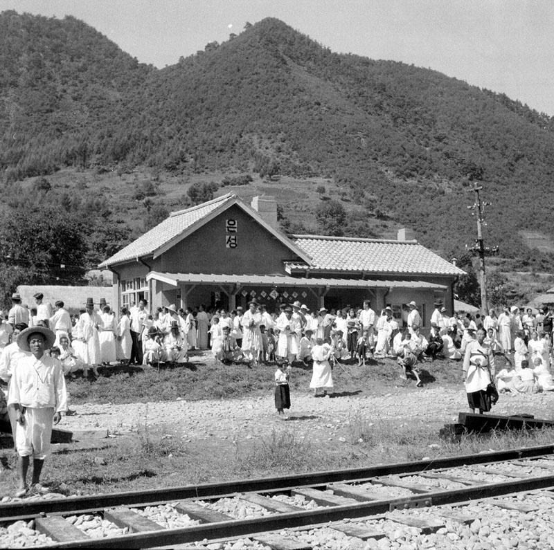 함백선 개통식 인파(1957년) (CET0031257) | 함백선 종착역 함백역 전경(1957년) (CET0031257) | |