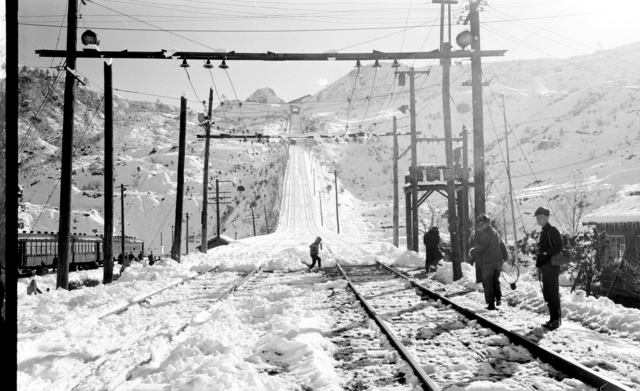 해방 직후 철암의 광산 철로 (DTC0002962) | 눈 쌓인 철암선(1960년) (CET0094822) | |