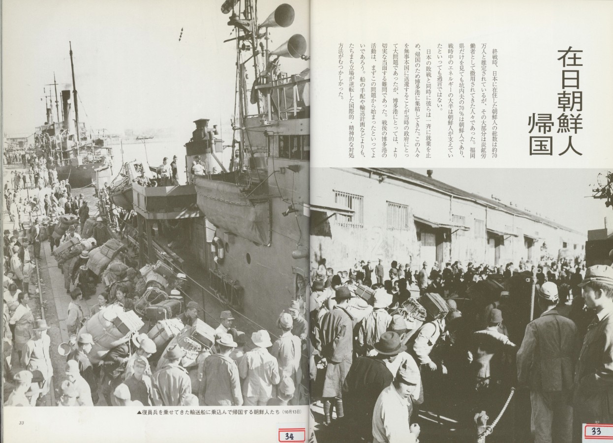¶ 태평양전쟁 패전 직후 일본 정부와 연합국총사령부(GHQ/CAP)는 재일 조선인을 포함한 식민지 출신 인구를 본국으로 돌려보내는 대규모 송환 정책을 추진하였다. 일본에서 조선으로의 귀환은 하카타와 시모노세키 등 주요 항만에서 출발하는 공식 송환선을 이용하는 방식과, 민간 선박을 이용한 자력 귀환이 병행되었다. 그러나 귀환 과정은 매우 위험했다. 선박 이동 중 태풍 등 자연재해로 사망하거나 해적단의 공격을 받아 피해를 입은 조선인도 적지 않았던 것으로 전해진다(FM00069842). 특히 1945년 8월 부산항으로 향하던 우키시마호가 폭침된 사건에서는 수많은 조선인이 사망하였으나, 현재까지도 정확한 침몰 원인과 희생자 규모는 명확히 밝혀지지 않고 있다. 1946년 초 연합국총사령부는 일본과 한반도 사이의 민간인 송환을 같은 해 3월경 대부분 마무리한 뒤, 일본에 남아 있던 조선인 가운데 귀환을 희망하는 사람들에게 소지품과 반출 금액에 대해 엄격한 제한을 두었다. 이로 인해 재산을 정리해야 하거나 이미 일본에 생활 기반을 둔 사람들은 귀환을 미루거나 포기할 수밖에 없었다. 귀환 조건이 강화되었음에도 일본에 잔류하는 조선인 수가 줄어들지 않자, 일본 정부는 이들을 대상으로 외국인 등록을 실시하고 재일 외국인으로 관리하기 시작했다. 1947년 말 기준 일본에서 남한으로 유입된 인구는 약 110만~128만 명으로 추산되며, 일본에 남은 조선인은 약 60만 명에 이르는 것으로 알려져 있다(FM00069842). 이 시기에 일본에 잔류한 조선인들이 오늘날 재일동포 사회의 기초 집단을 이루고 있다.